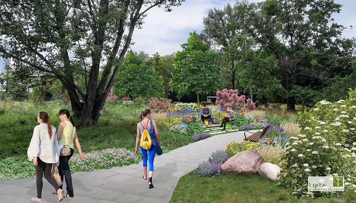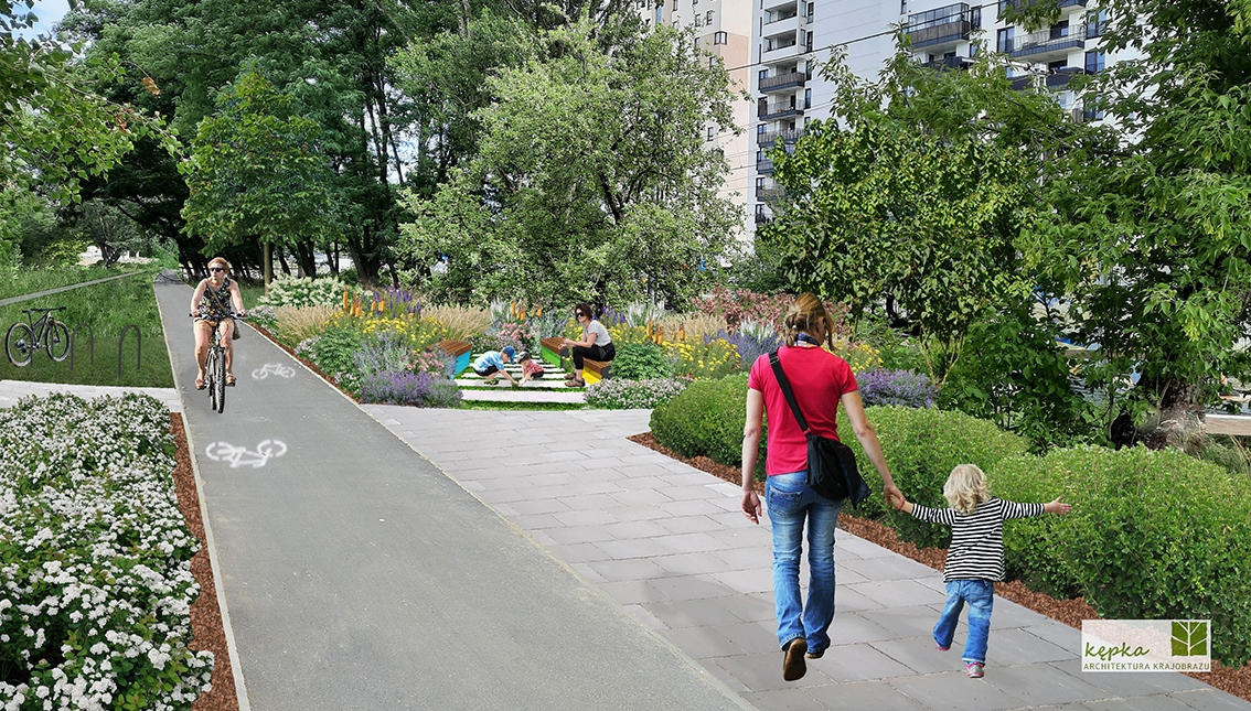 Na rzecz poprawy lokalnego mikroklimatu urządzono nową, starannie dobraną szatę roślinną. Całość uzupełniło odtworzenie estetycznych nawierzchni trawiastych. Efektem jest harmonijna, zielona i funkcjonalna strefa odpoczynku w pełni gotowa do użytkowania