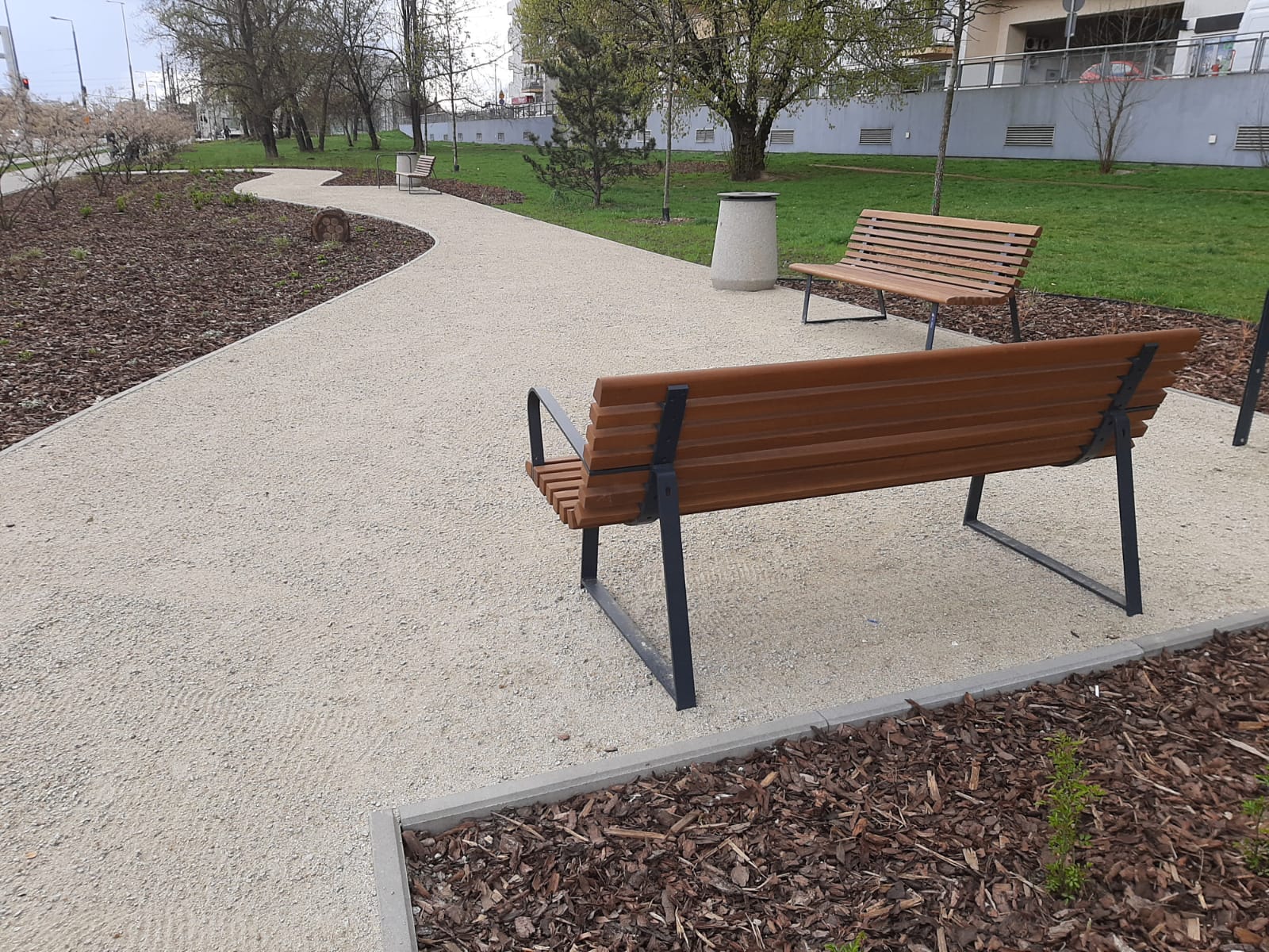 Projekt objął uporządkowanie terenu poprzez wykonanie alejki pieszej o nawierzchni mineralnej oraz fragmentów z kostki betonowej, a także montaż elementów małej architektury, takich jak ławki‑huśtawki, ławki miejskie, stojaki rowerowe, kosze na śmieci, poidełka dla ptaków i domki dla owadów. Całość dopełniły nowe nasadzenia roślinne na rabatach, które podniosły walory estetyczne i ekologiczne przestrzeni, tworząc przyjazny park kieszonkowy dla mieszkańców okolicy.